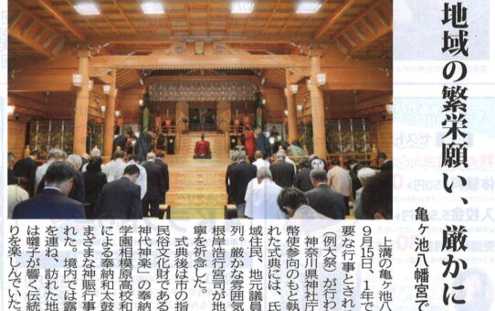 本日は地元タウン紙の「タウンニュース」に亀ヶ池八幡宮の記事が掲載されましたので御紹介致します。 タウンニュース9月25日号発行の記事にて、... 続きを読む