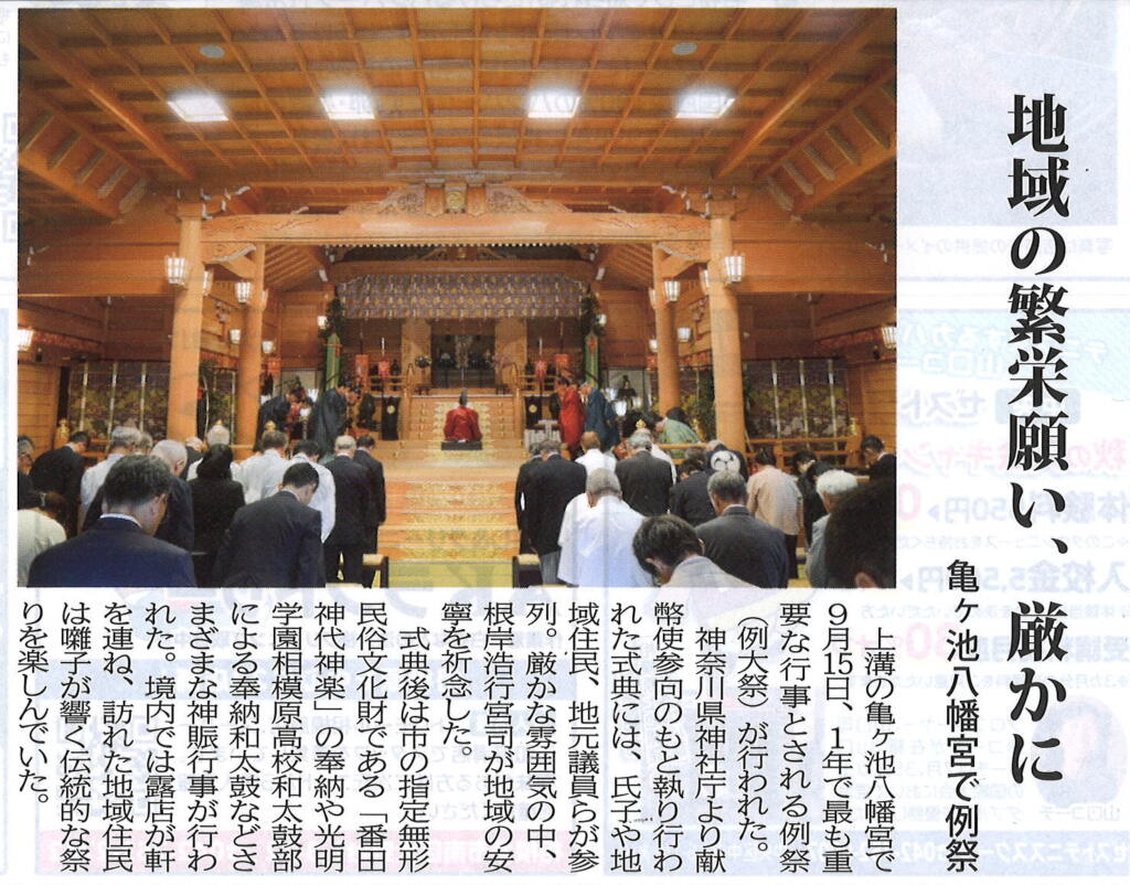 タウンニュース9月25日号発行の記事にて、先日行われました例大祭の様子が掲載されました。
