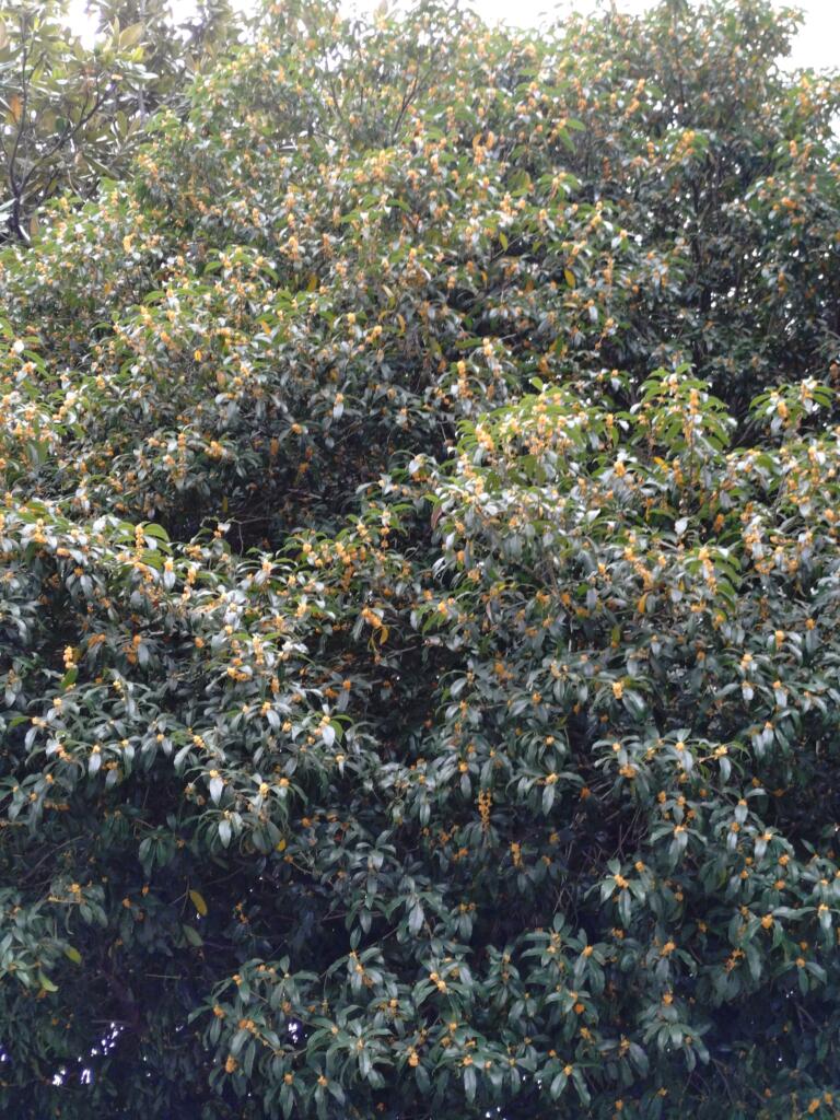 境内には何本か金木犀が植わっていますが、日当たりなどの関係か木によって少し日がずれて花が咲くので、長く香りを楽しむことができます。