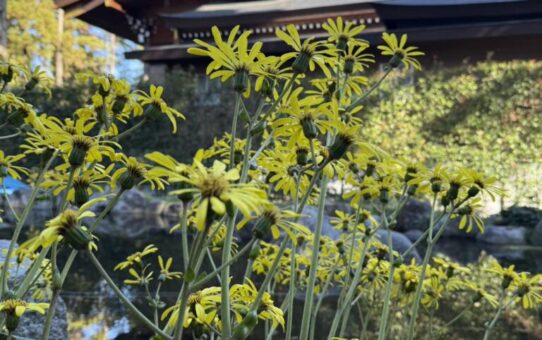 ツワブキ投稿日: 2025-11-282025-11-29 投稿者: kamegaike 本日は境内に咲き誇るツワブキをご紹介いたします。 御神池を背景にして菊に似た鮮やかな黄色の花が咲き、冬の始まりを彩ってくれています。 こ... 続きを読む