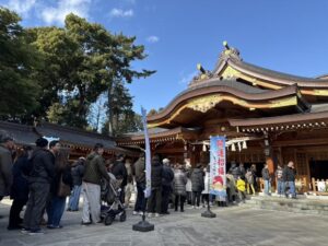 本日は、元日の境内の様子をご紹介します。大勢の参拝者様にお参り頂き、境内は終日賑やかな様子を見せておりました。ご参拝の方々は新年の抱負や各々の祈りを胸に、皆様真剣にご神前へ手を合わせてお参りされておりました。 また新年ということで、厄除や家内安全などの御祈願をはじめとして、大勢の方が新年祈願祭をお受けになりました。 三が日も二日目を迎えましたが、まだまだ賑わいは衰えません。職員一同皆様のご参拝を心よりお待ち申し上げます。