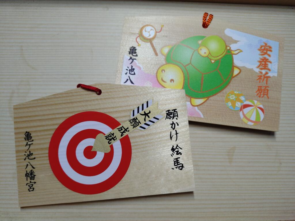 また現代では馬に限らず様々なイラストが描かれた絵馬があり、亀ヶ池八幡宮でも何種類かご用意しております。