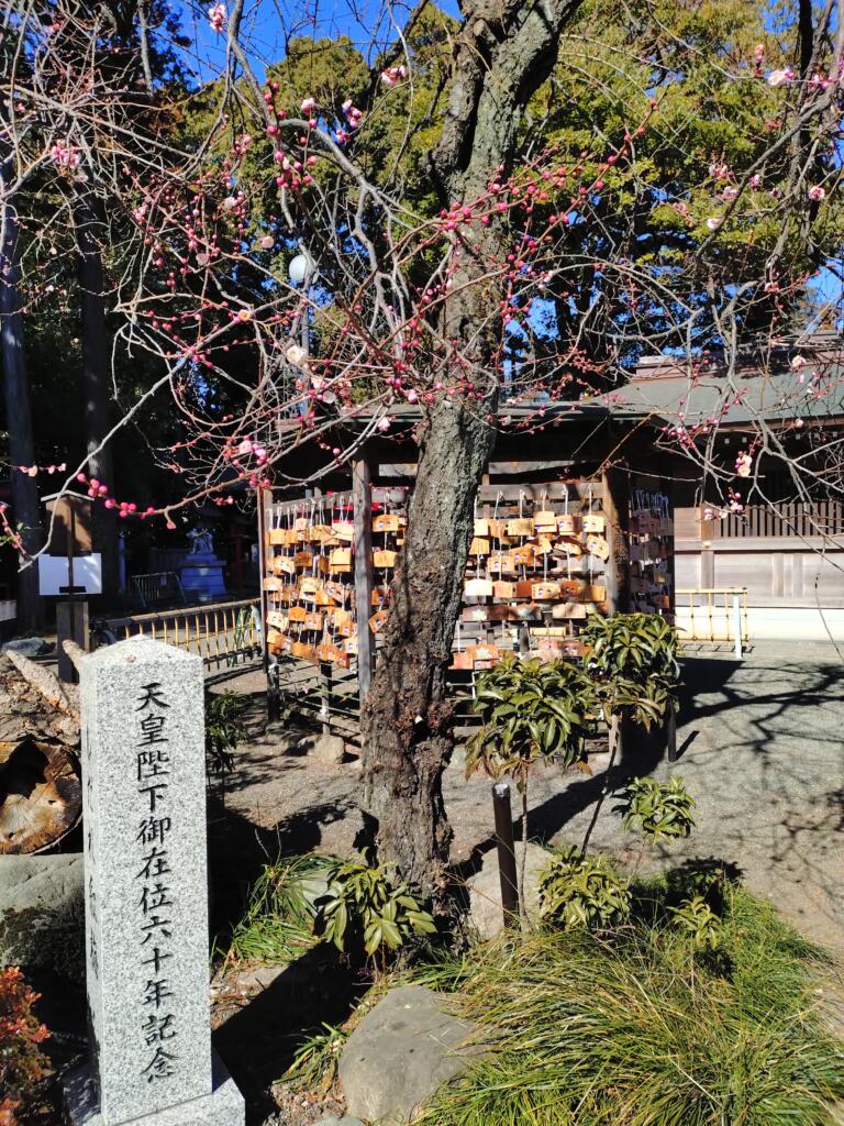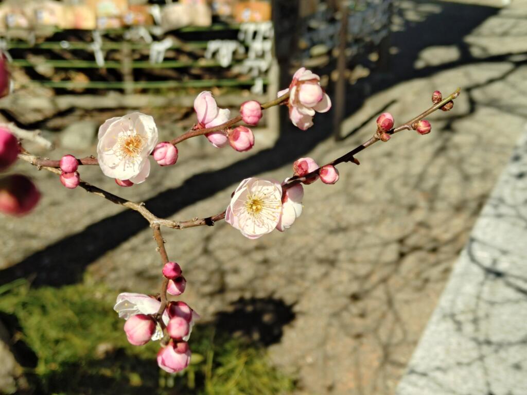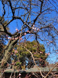 昭和天皇御即位60周年記念の枝垂れ紅梅が開花し始めましたのでご紹介します。 例年より早い開花で、現在もたくさんの花を咲かせています。蕾も多く膨らみ始めており、満開が楽しみです。まだまだ寒い日が続きますが、少しずつ春が近づいていると感じます。
