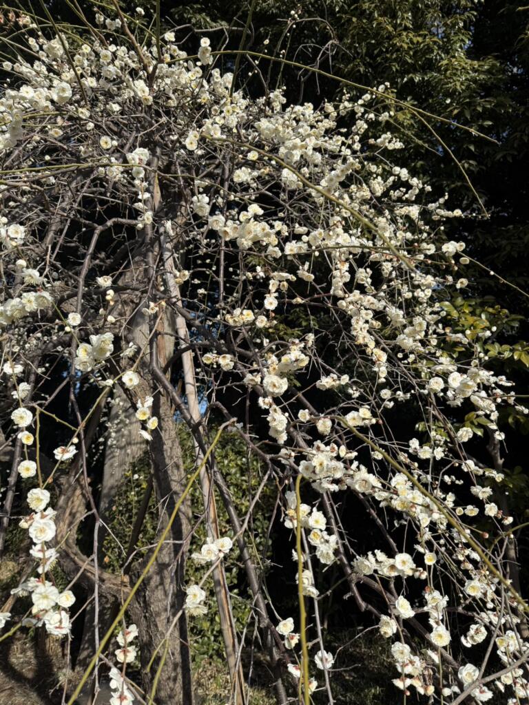 以前境内のしだれ紅梅の花の様子をブログにて掲載しましたが、白梅も綺麗に咲きました。