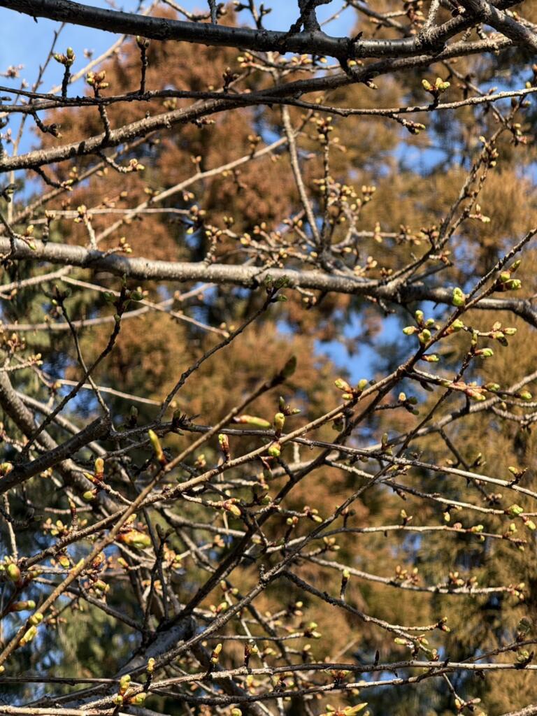 神苑の河津桜はまだ蕾です。開花が待ち遠しいですね。